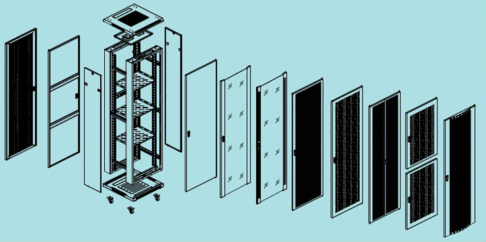 机柜按构件的承重、材料及其制造工艺的不同,可分为型材和薄板两种基本结构。