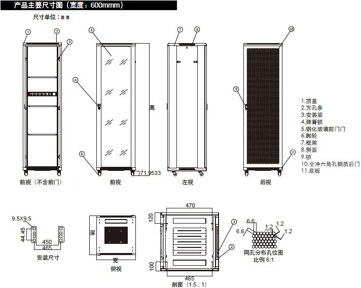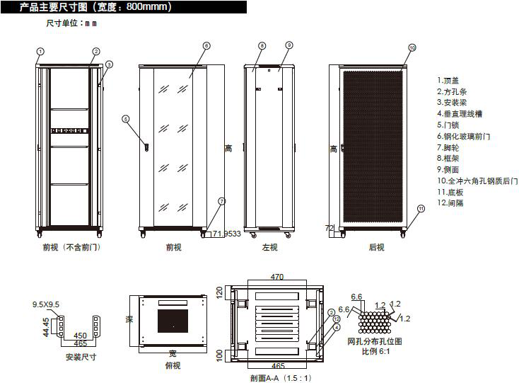 3、带透气孔的前门和后门,方便通风散热,提高网络设备运行的稳定性