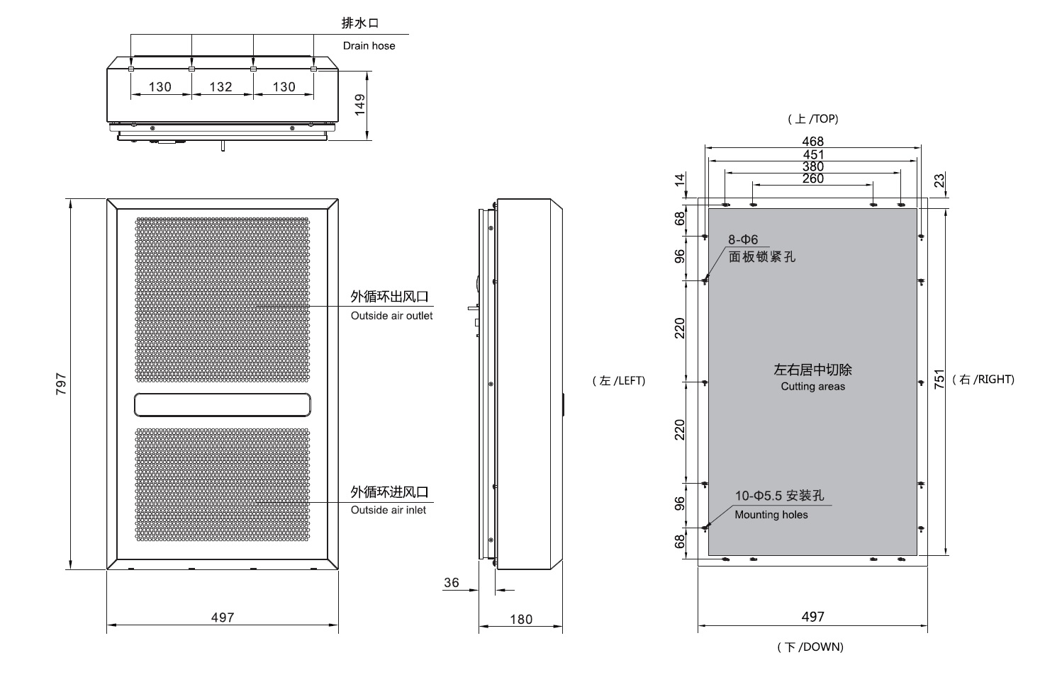 497*797*180(mm, H*W*D)