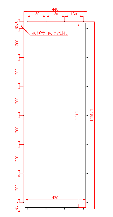 机柜安装尺寸示意图:门装开窗尺寸为1272×420mm