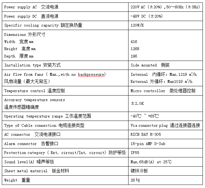 风扇流量(最大无背压):内循环:Max.1219 m3/h 外循环:Max1019 m3/h
