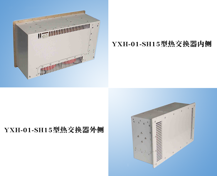 YXH-01-SH15型热交换器应用于密闭电子设备机箱上。该产品在保证密闭机箱内电子设备散热的基础上,同时提供良好的密闭和三防能力。