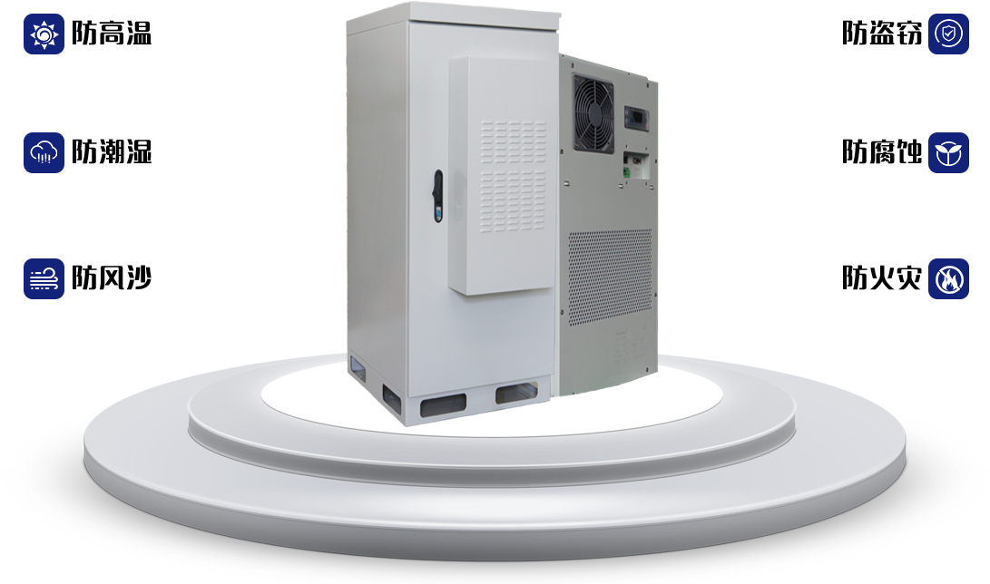 隔热性能好,防护等级高 前后门设计,便于设备安装和布线 嵌入式机柜门,密封防盗 门装空调器,配置应急排风散热风扇,LED照明 ..