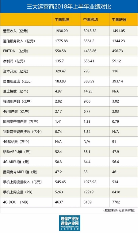 但与此同时,用户ARPU值并没有相应增长。数据显示,2018年上半年中国联通4G用户ARPU值56.6元,同比下降15%;中国移动4G用户ARPU值64.4元,同比下降10%。业内人士分析称,移动通信服务中数据流量收入增长,主要来自运营商内老用户从2G3G向4G转换或者竞争对手转网带来的部分新增用户。
